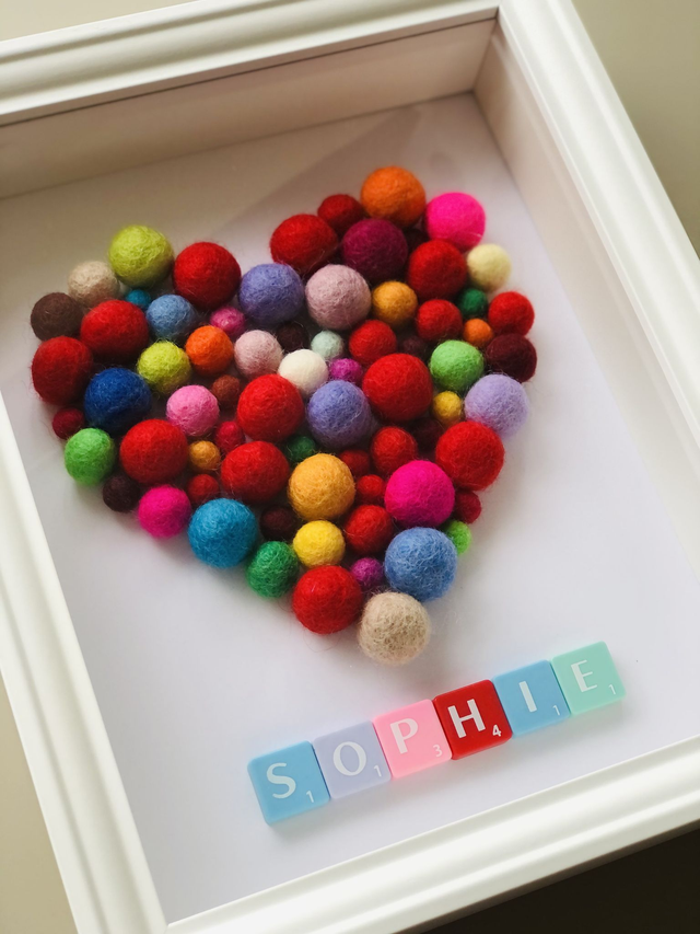 COLOURFUL HEART FRAME WITH SCRABBLE NAME