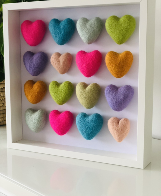 Add a joyful pop of colour to your space with our colourful hearts frame, a charming decor piece designed to brighten any room with warmth and love. This beautifully crafted frame captures the essence of happiness, positivity and affection. Perfect for bedrooms, nurseries, living rooms, or as a heartfelt gift.
