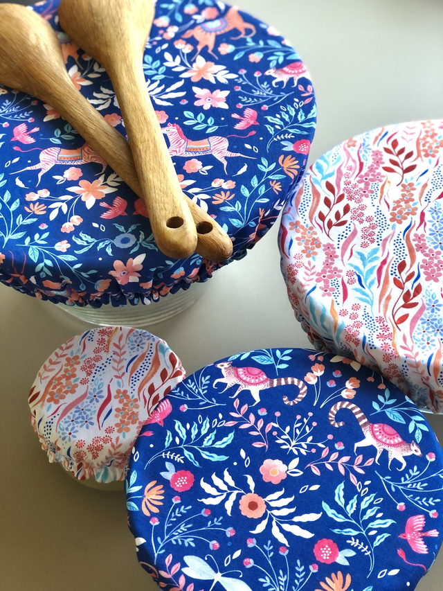 Our colourful and reversible bowl covers are made with 100% cotton are of the highest quality. They are washable and reusable, perfect for indoor and outdoor use, making it a great investment for anyone looking to be sustainable in the kitchen. Not only do these covers add a pop of colour to your table, they also make the perfect gift for any eco-conscious friend. With its versatile and durable design, our bowl covers are sure to become a go-to accessory for all your food storage needs.