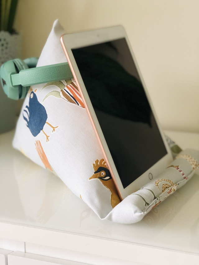Introducing our handmade tablet stand, (known as well as iPad cushion, tablet pillow, tablet beanbag etc.) perfect for all your e-readers and mobile phone needs. This unique stand provides a cozy resting place for your iPad, book, Kindle, or any other device, alleviating the strain on your neck and arms. Enjoy hands-free viewing of your favorite books, movies, and shows anywhere you go. Made with high-quality materials, this stand is both sturdy and lightweight, making it an ideal gift for anyone on the go. Elevate your comfort and productivity with our handmade tablet stand. Order yours today!